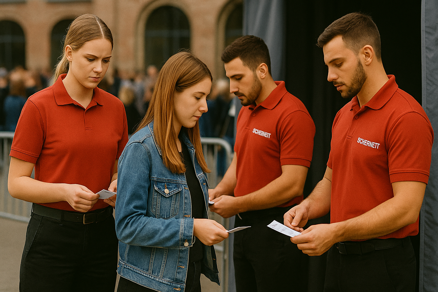 Einlasskontrollen sichern Veranstaltungen effektiv: Tickets, Ausweise und Taschen werden geprüft, um unerlaubten Zutritt zu verhindern und die Sicherheit aller Gäste zu gewährleisten.